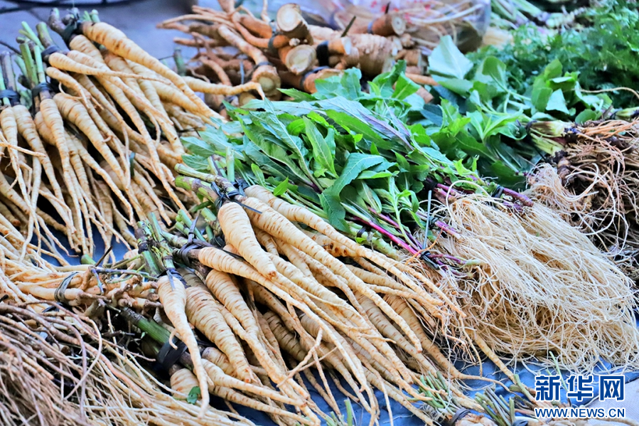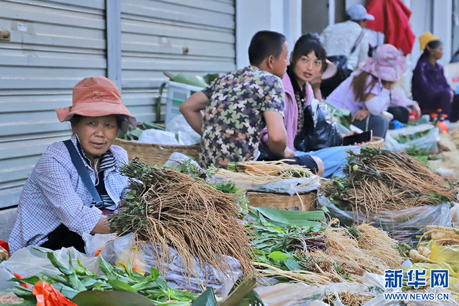 村民在集市售賣草藥(6月20日攝)。新華網發(穆星潔 攝)