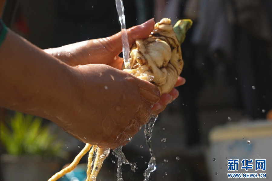 清洗藥材(6月21日攝)。新華網發(羅寧姣 攝)