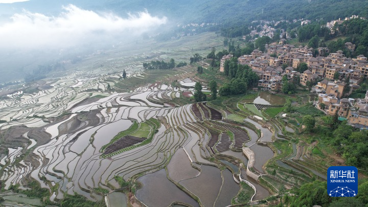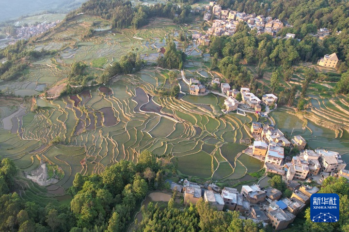 5月7日拍攝的元陽哈尼梯田核心區的壩達梯田(無人機照片)。新華社記者 劉詩平 攝