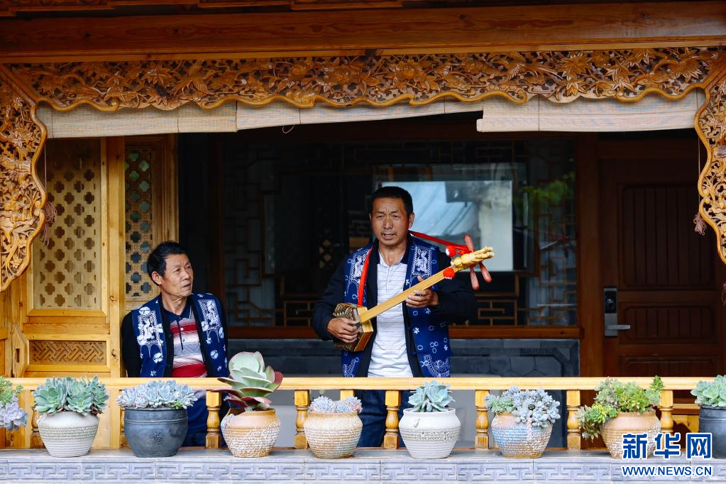 白族大本曲彈唱(6月14日攝)。新華網發 (胡妤雅 攝)