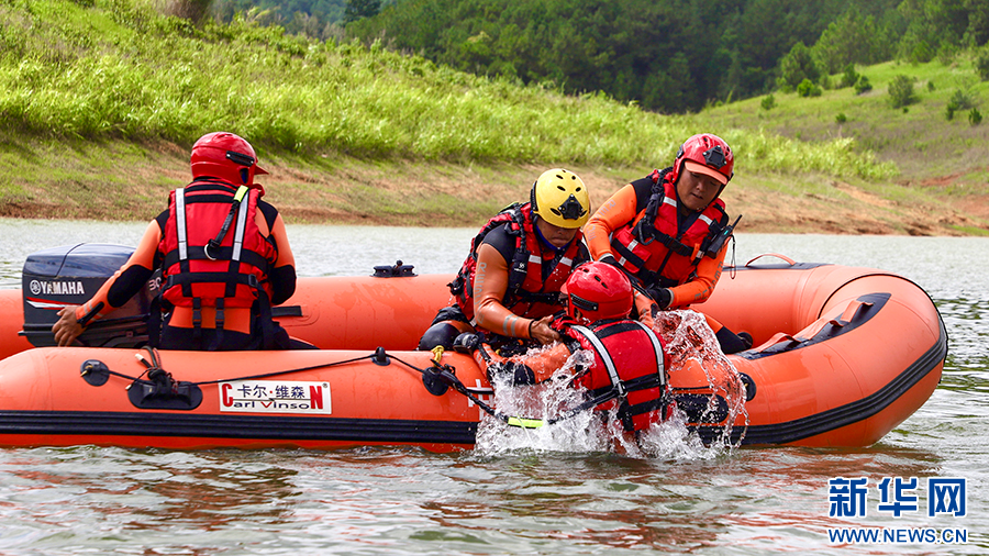 森林消防員開展水域救援訓練(攝于6月29日)。新華網發(云南省森林消防總隊保山支隊供圖)