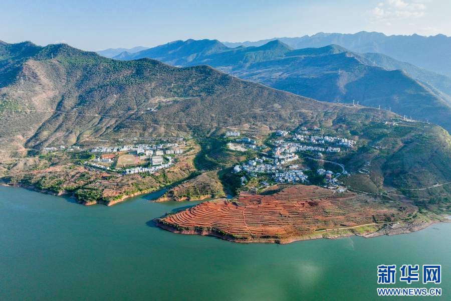 航拍鏡頭下金沙江畔的灣碧鄉(6月28日攝)。新華網發(蘇波 攝)