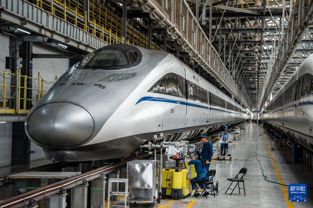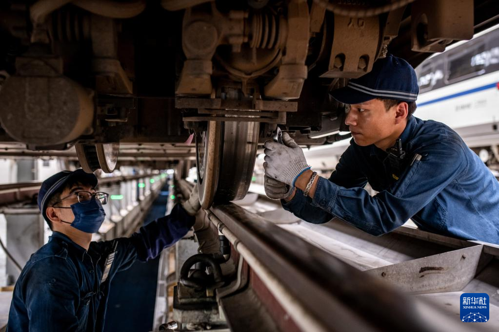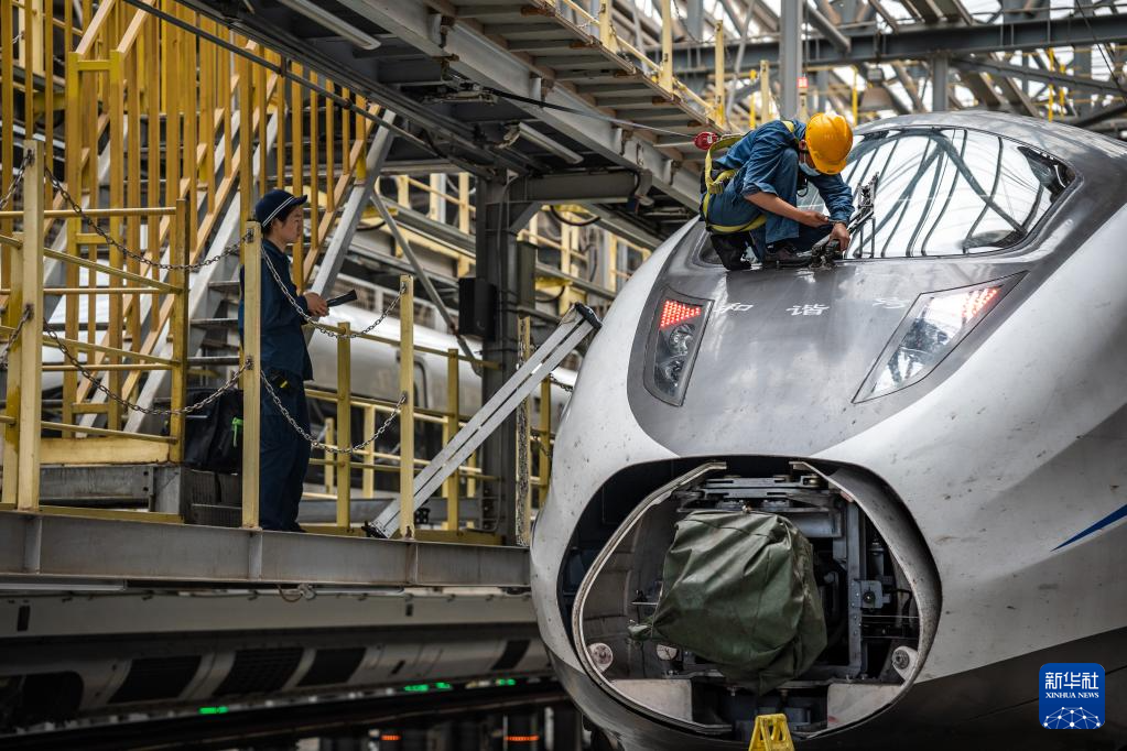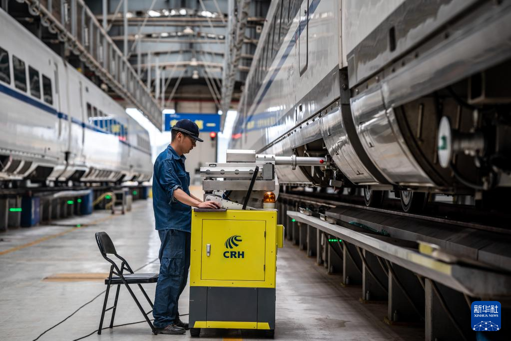 暑運期間,中國鐵路昆明局集團有限公司昆明車輛段的工作人員加大對動車的檢修保養力度,確保每一組動車組“健康”上線,守護旅客平安出行。