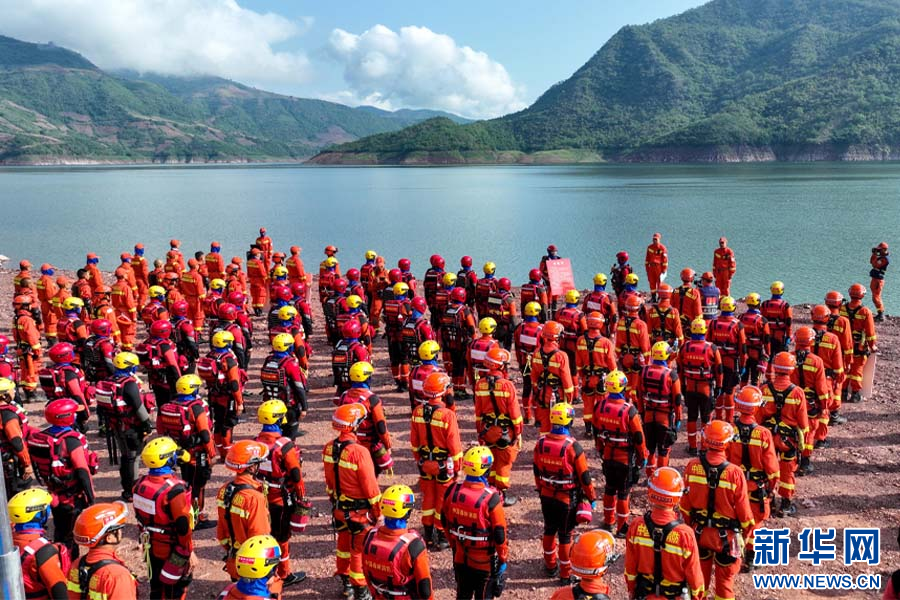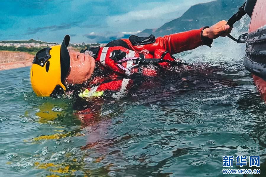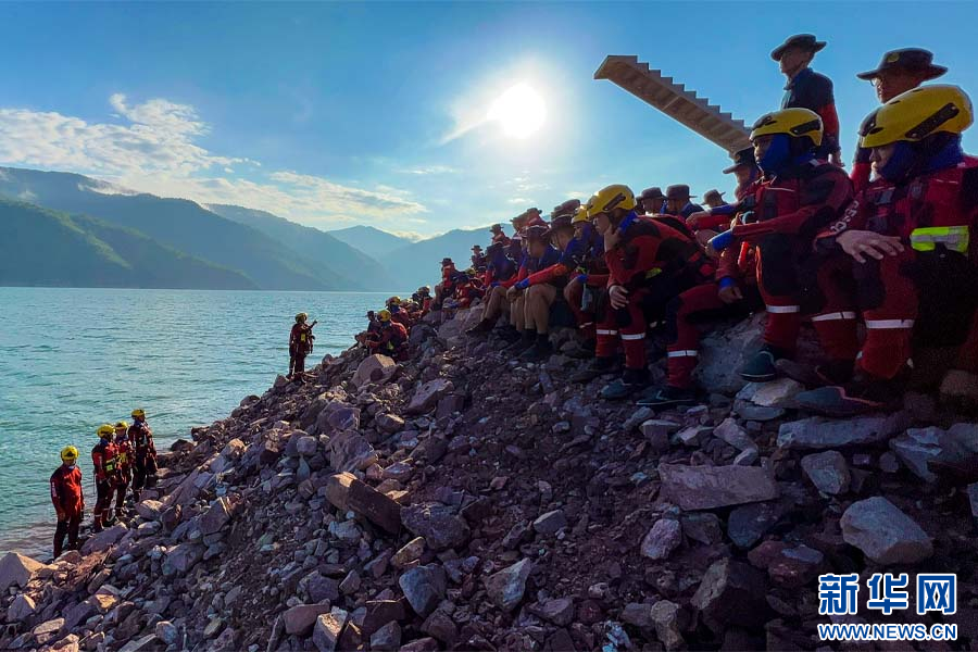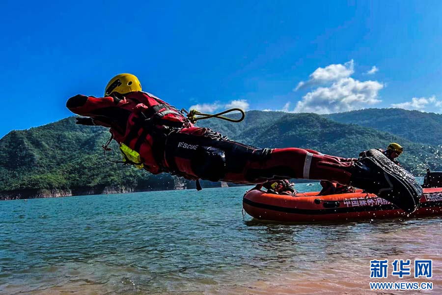 森林消防員進行水域救援現場教學(6月29日攝)。新華網發(普夢 攝)