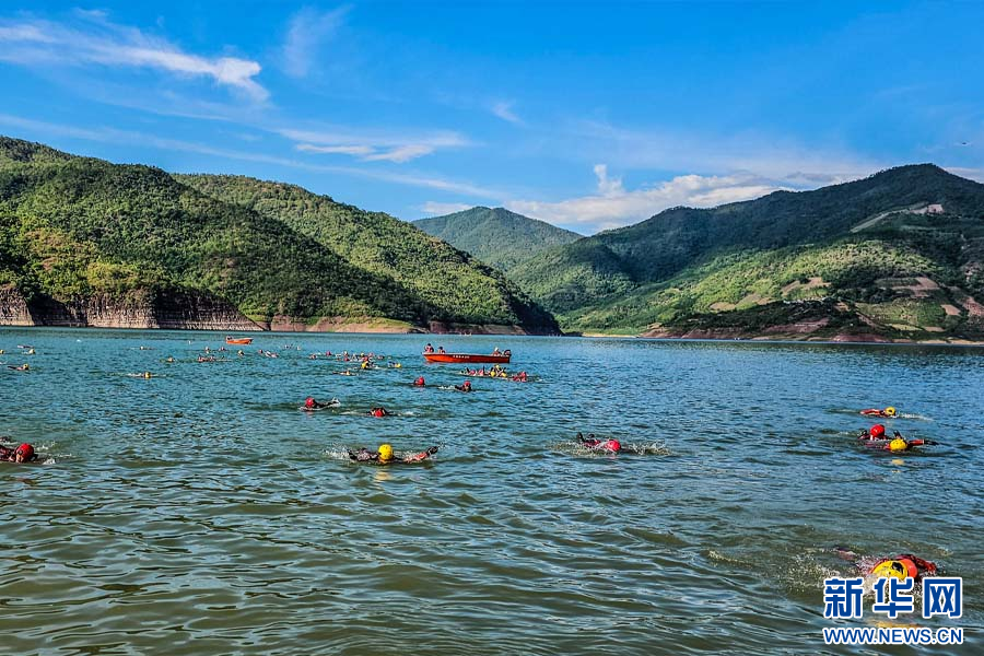 森林消防員進行武裝泅渡訓練(6月28日攝)。新華網發(王志華 攝)