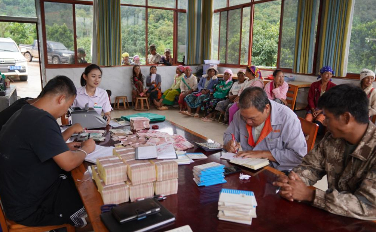 收購商給新鮮松茸稱重(7月4日攝)。新華網發(德欽縣融媒體中心供圖)