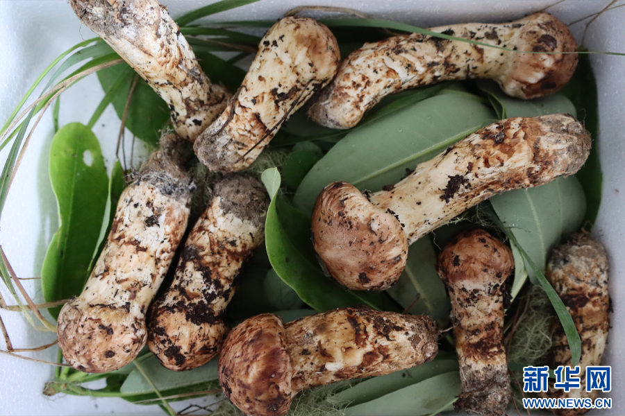 采摘出土的野生松茸(7月4日攝)。新華網發(德欽縣融媒體中心供圖)