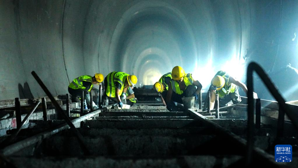 7月8日,滇藏鐵路麗香段哈巴雪山隧道內,建設者進行無砟道床施工。新華社記者 丁怡全 攝