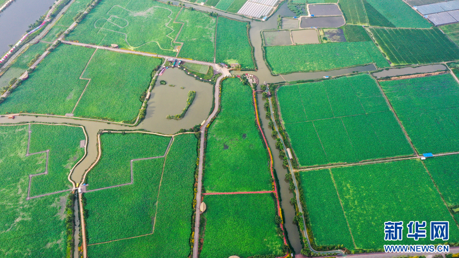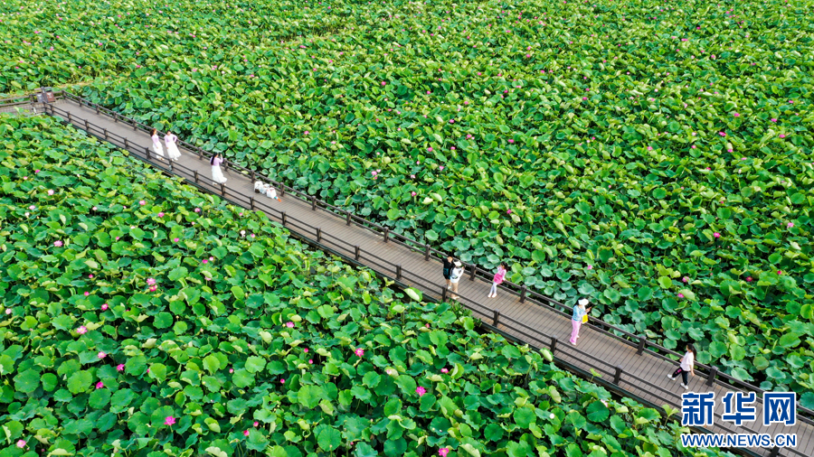 曲靖市麒麟水鄉千畝荷花競相綻放(7月1日攝)。新華網發(孫文來 攝)