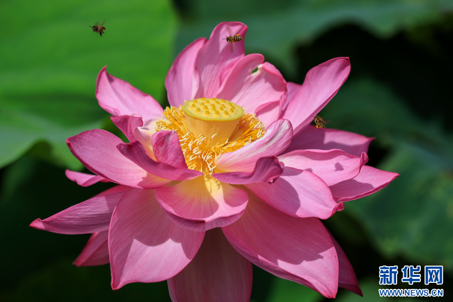 彌勒市湖泉生態園內綻放的荷花(6月11日攝)。新華網發(鄭益 攝)