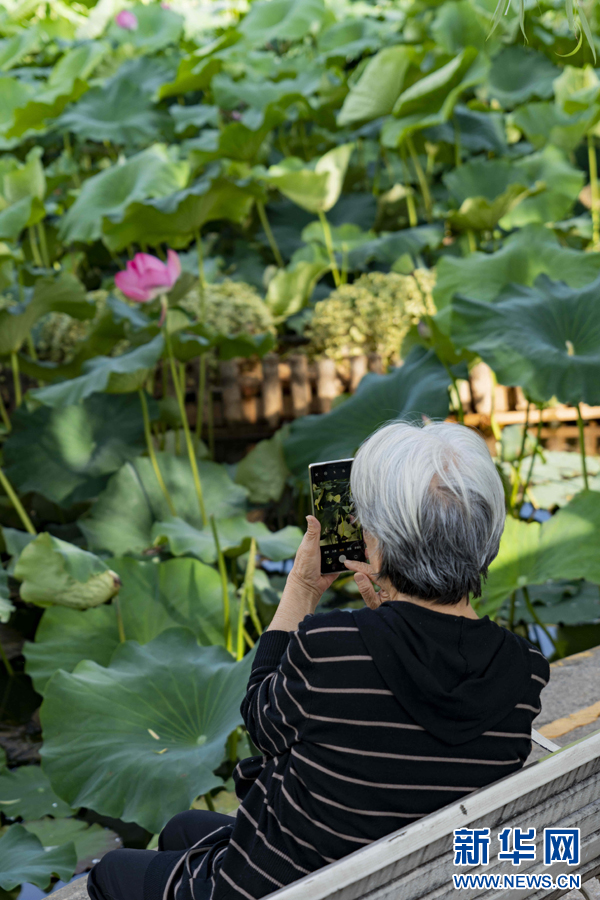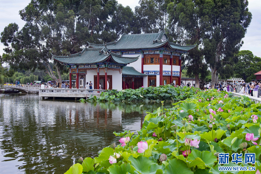 昆明市大觀公園內荷花競相綻放(6月24日攝)。新華網發(鄭益 攝)