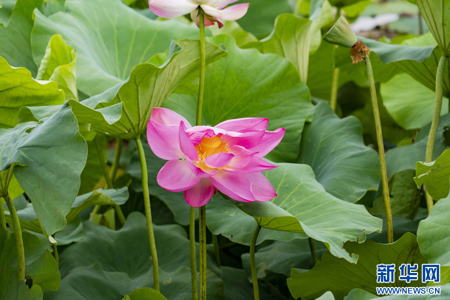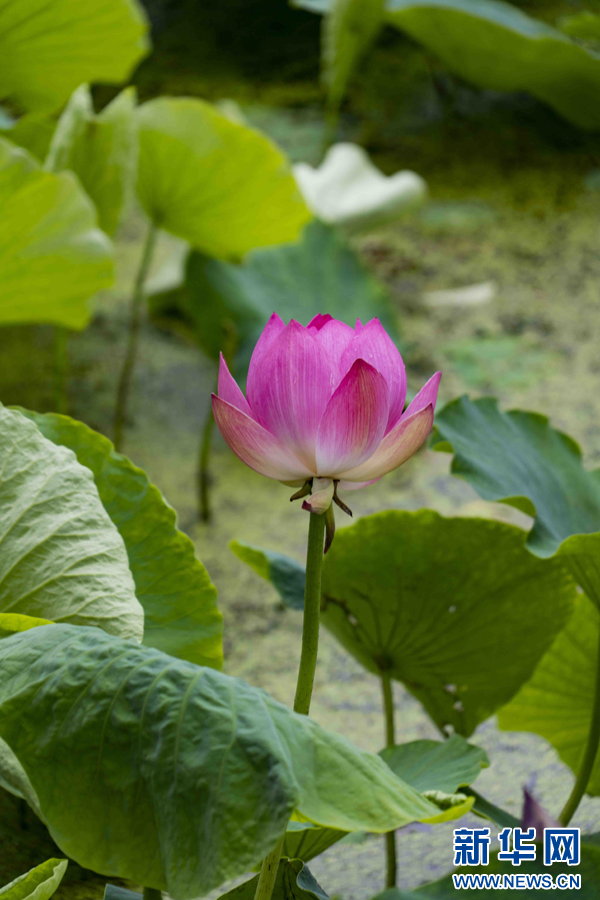 彌勒市湖泉生態園內亭亭玉立的荷花(6月11日攝)。新華網發(鄭益 攝)
