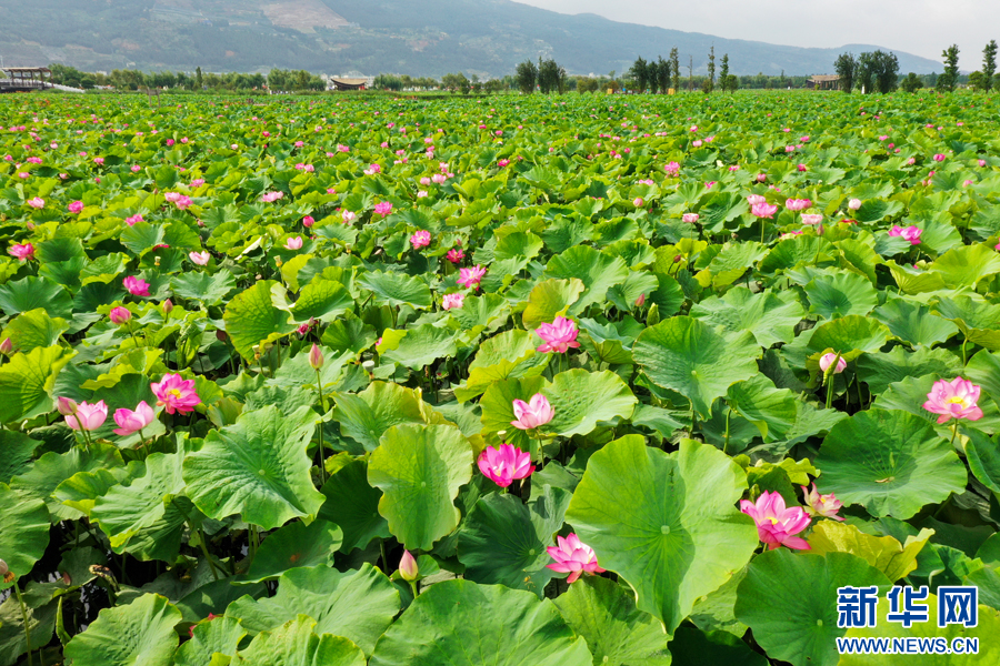 曲靖市麒麟水鄉千畝荷花競相綻放(7月2日攝)。新華網發(孫文來 攝)
