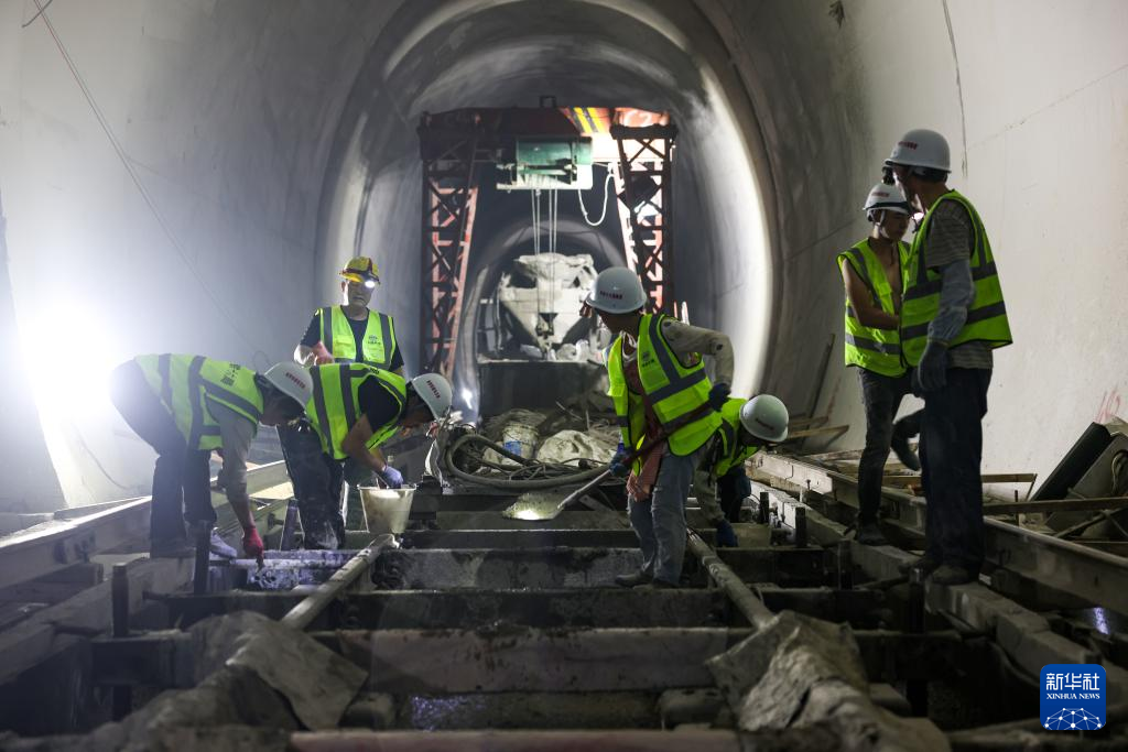 7月8日,在滇藏鐵路麗香段哈巴雪山隧道內,建設者進行施工。新華社記者 丁怡全 攝