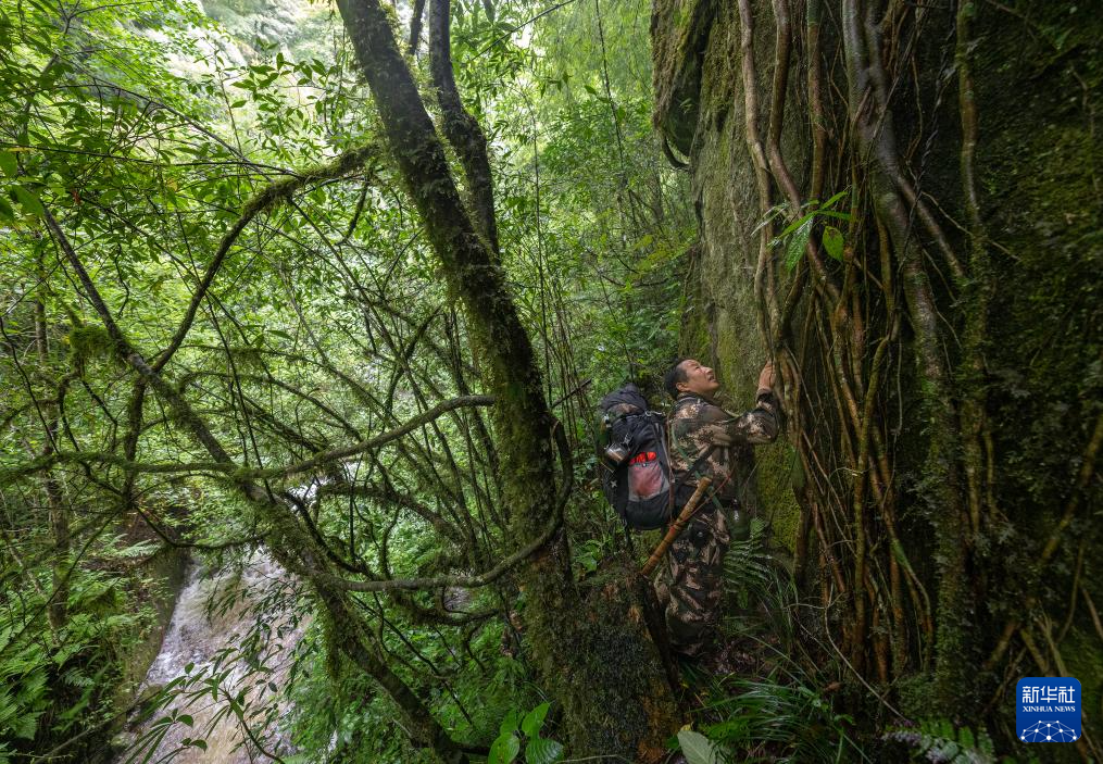 7月8日,在高黎貢山國家級自然保護區,何貴品準備攀爬懸崖。
