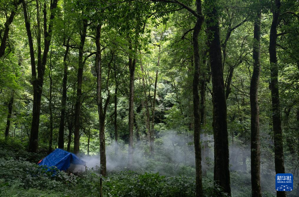 7月8日,巡護隊員在高黎貢山國家自然保護區搭棚子。