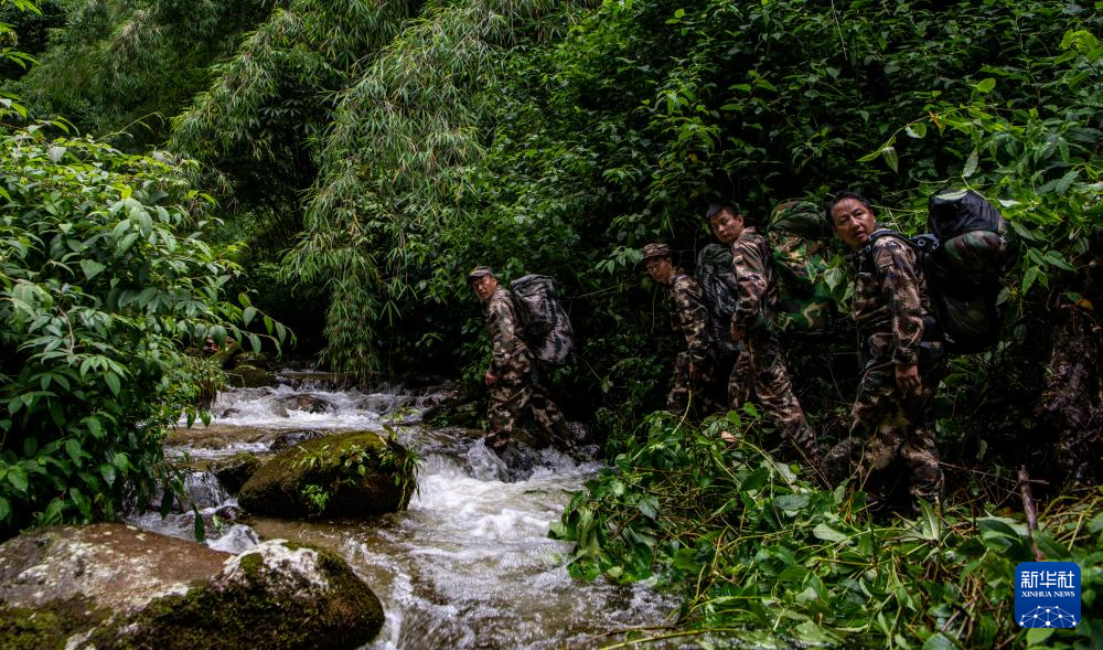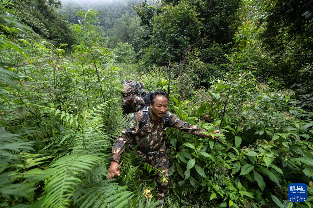 7月8日,巡護隊員在高黎貢山國家級自然保護區中行進。