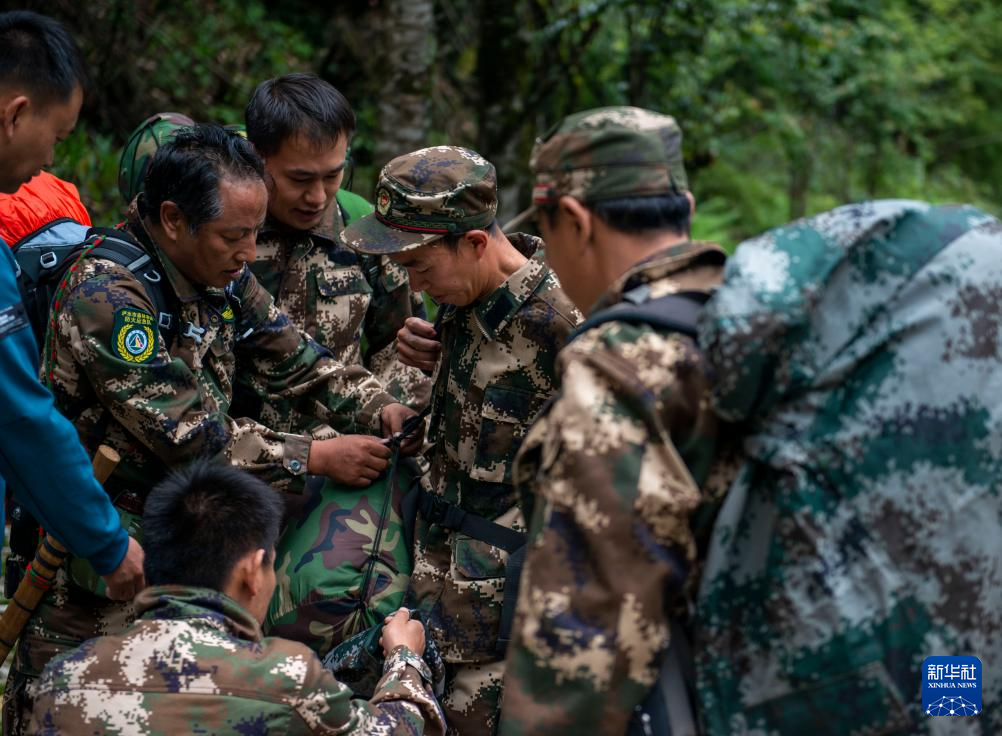 7月8日,在高黎貢山國家級自然保護區,巡護隊員在進山前整理背包。