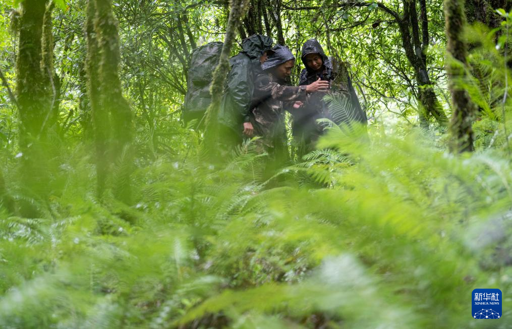 7月9日,巡護隊員在高黎貢山國家級自然保護區中行進。