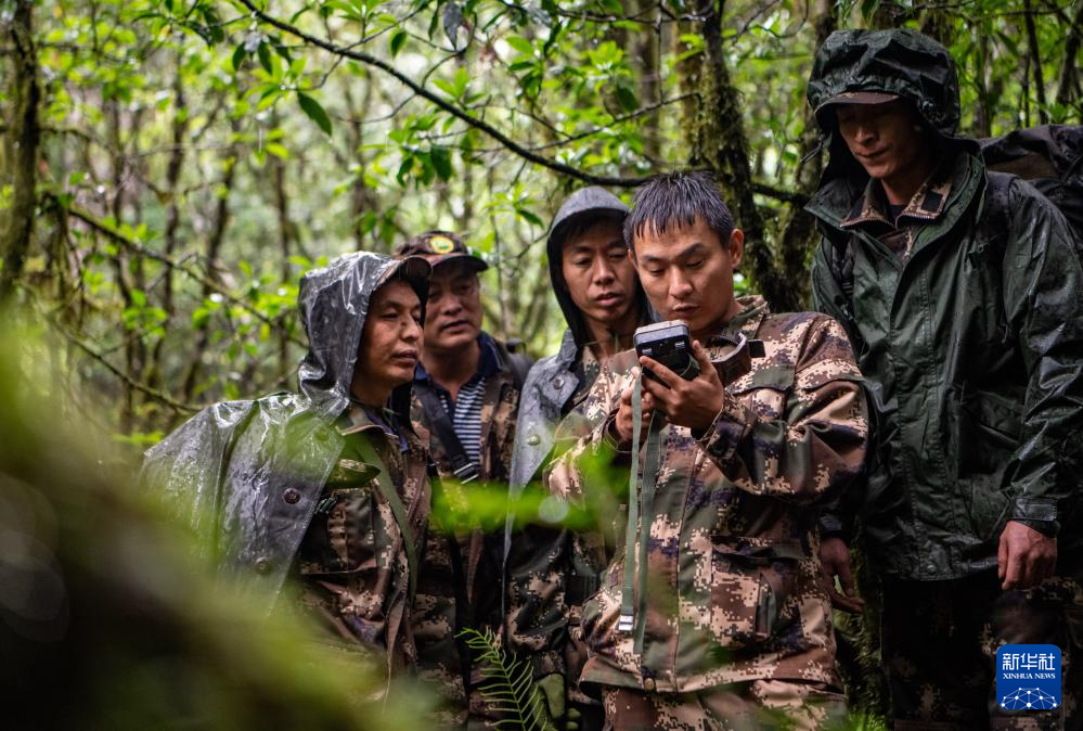 7月9日,巡護隊員在高黎貢山國家級自然保護區查看紅外相機。