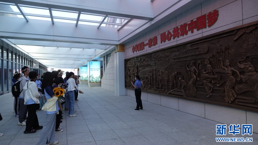 師生們參觀熱帶雨林民族文化博物館(7月23日攝)。 新華網發(巖罕丙 攝)