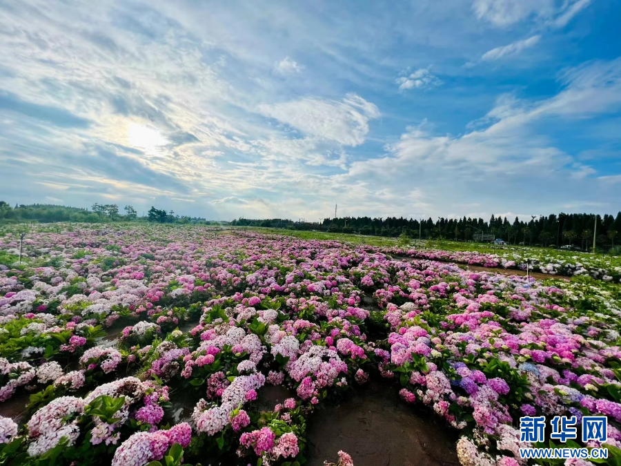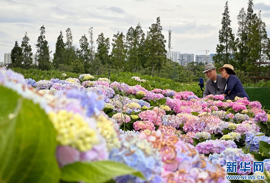盛放的繡球花構成了一片彩色的海洋(資料圖)。新華網發(呈貢區融媒體中心供圖)