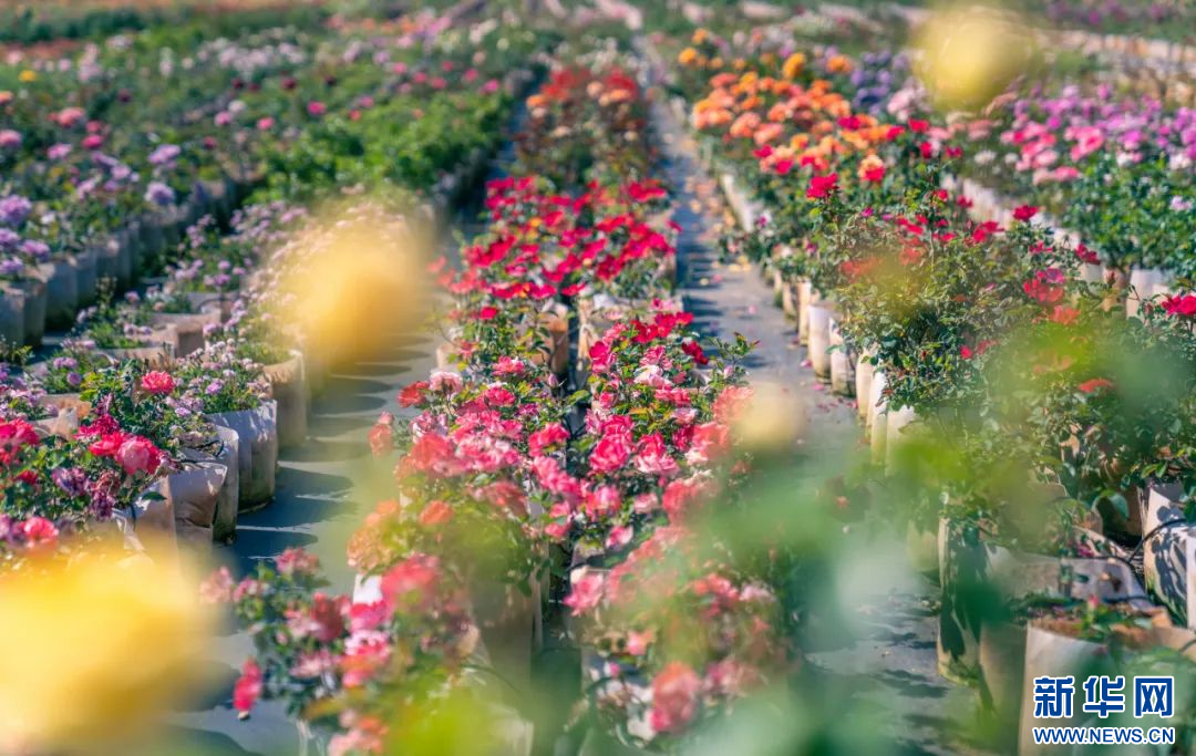 清水河村月季新品種研發基地里盛開的月季(資料圖)。新華網發(晉寧區融媒體中心供圖)