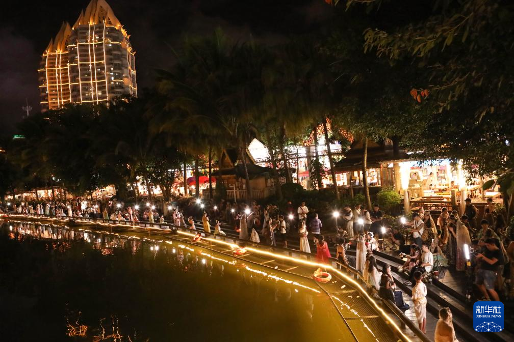 7月29日深夜,游客在云南省景洪市告莊西雙景景區旅拍。新華社發(李云生 攝)