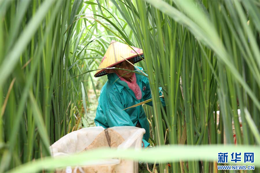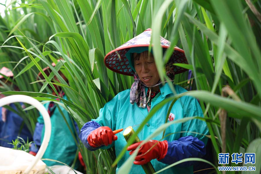 村民采收茭白(8月3日攝)。新華網發(顧正暉攝)