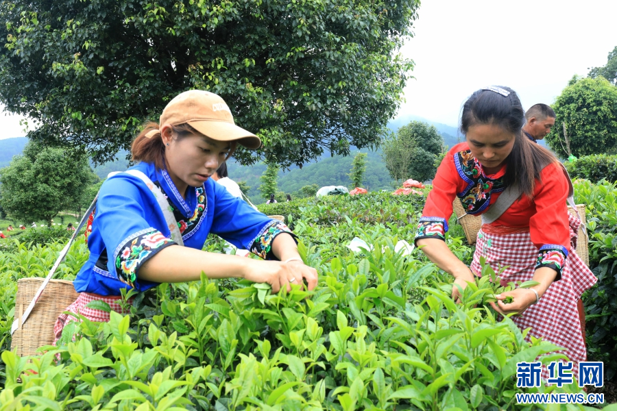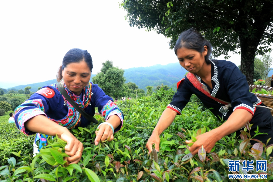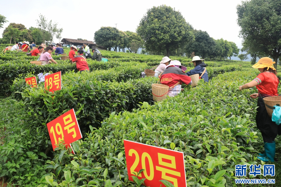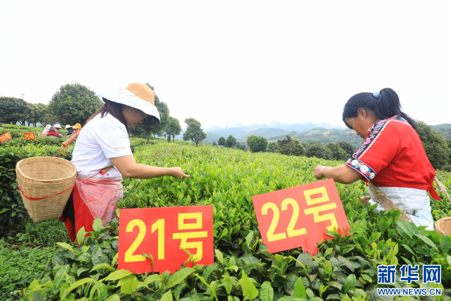 茶葉采摘競賽現場(8月4日攝)。新華網發(寧洱縣融媒體中心供圖)
