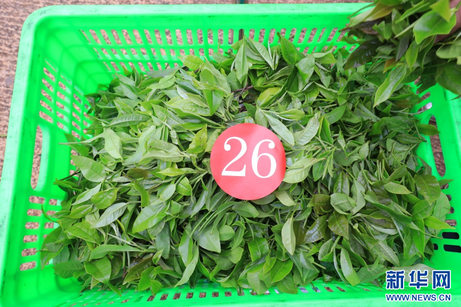 參賽選手采摘的茶葉(8月4日攝)。新華網發(寧洱縣融媒體中心供圖)