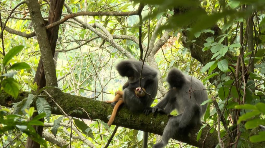 云南景東拍攝到國家一級保護動物印支灰葉猴