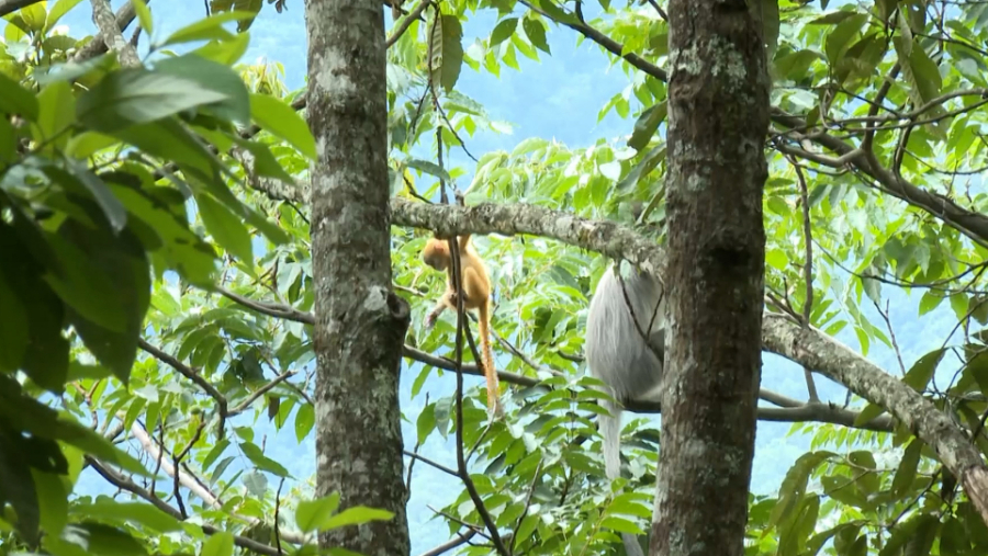 近日,記者跟隨云南省景東彝族自治縣公安局自然保護區派出所民警開展林區巡護工作時,在云南無量山國家級自然保護區景東片區拍攝到印支灰葉猴寶寶一家子的溫馨視頻。