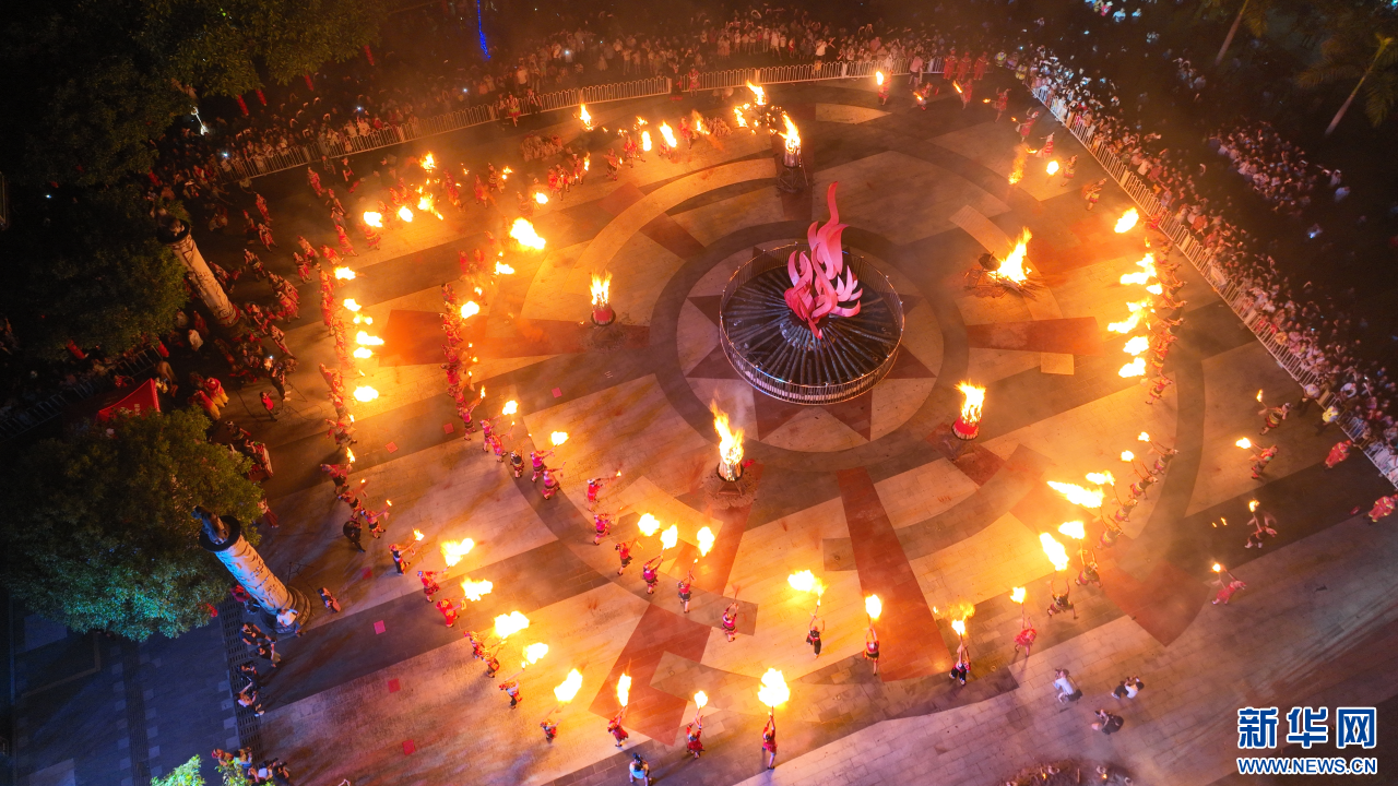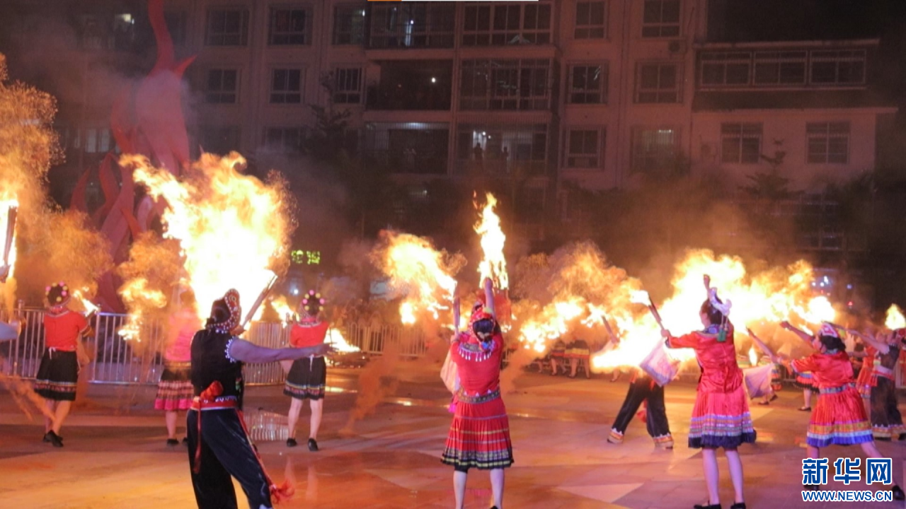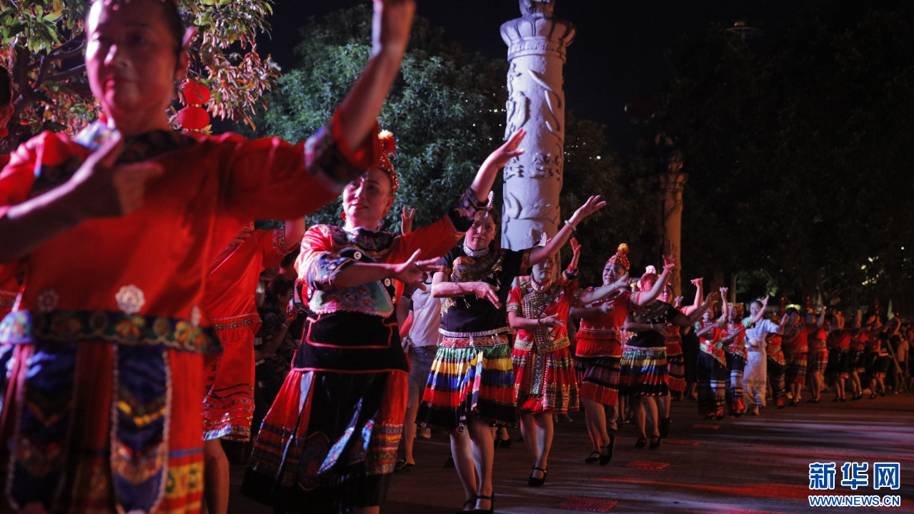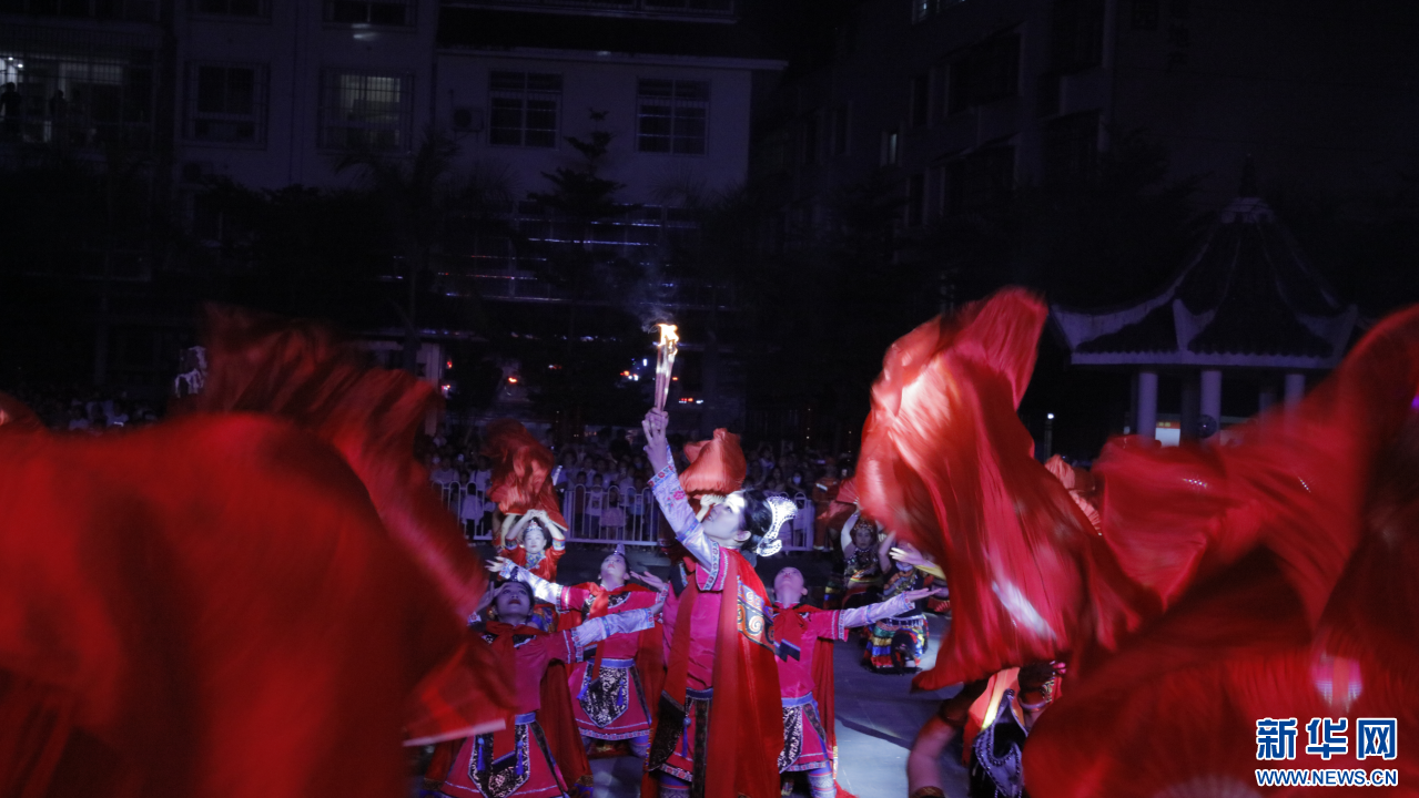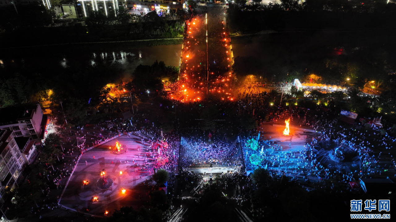 撒火把,群眾載歌載舞,歡度佳節(攝于8月11日)。新華網發(包旭鑫 攝)