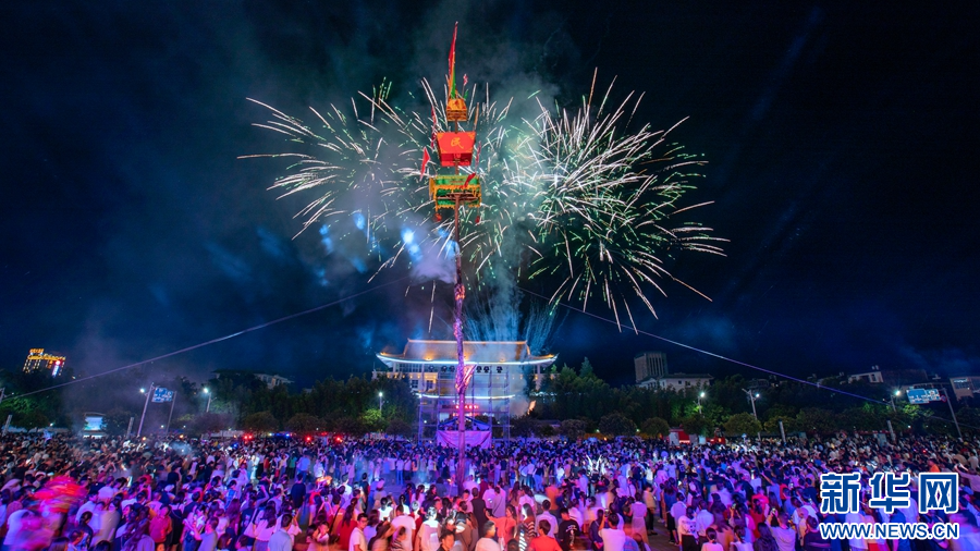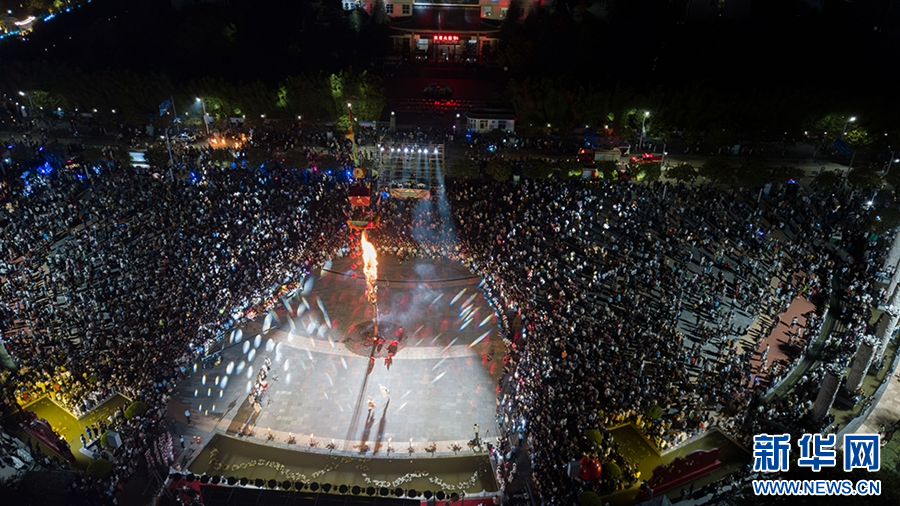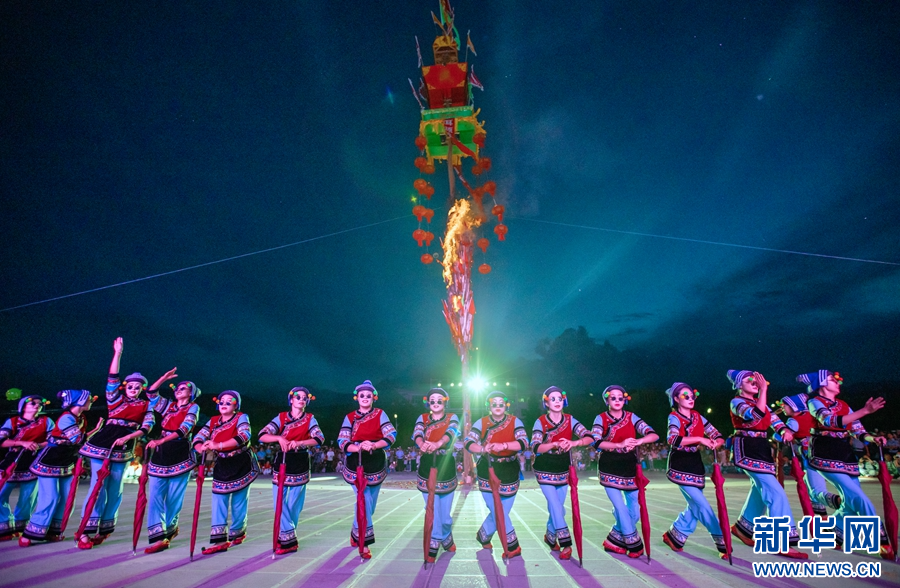 洱源縣城,群眾歡度火把節(攝于8月11日)。新華網發(楊燦華 攝)