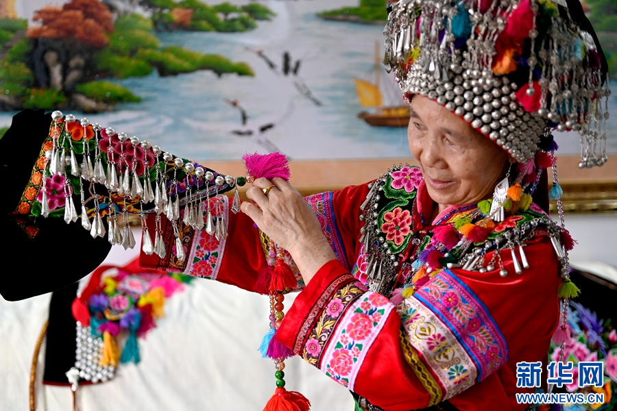 近年來,云南省大理白族自治州南澗彝族自治縣的南澗彝族傳統服飾制作技藝不斷在傳承中發展創新,并被列為縣級非遺保護項目。今年62歲的魯仙秀,作為南澗彝族傳統服飾制作技藝傳承人,多年來始終致力于南澗彝族刺繡技藝的傳承。