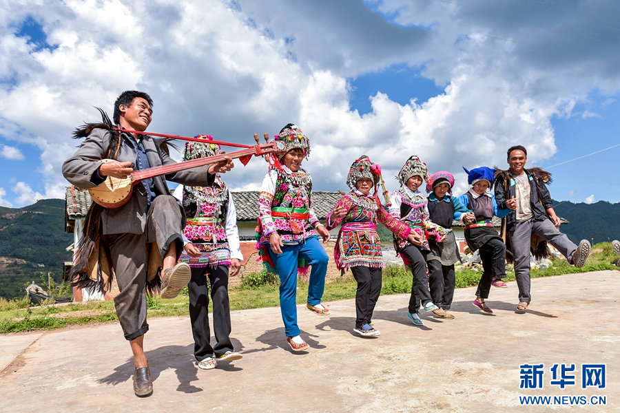 身著彝族服裝的群眾打歌(資料圖)。新華網發(適志宏 攝)
