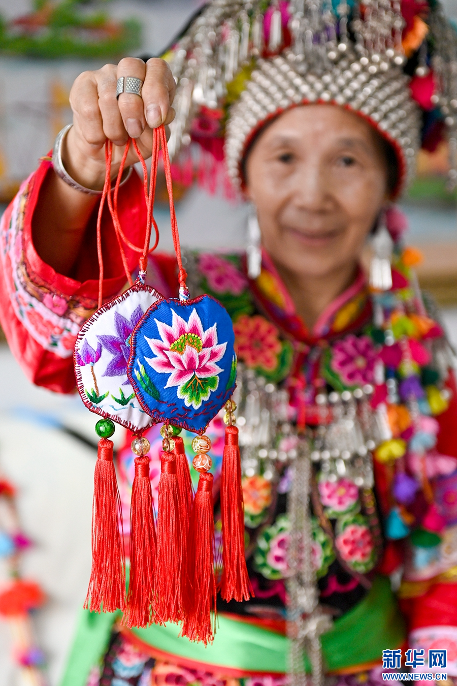 繡好的頭飾(資料圖)。新華網發(適志宏 攝)