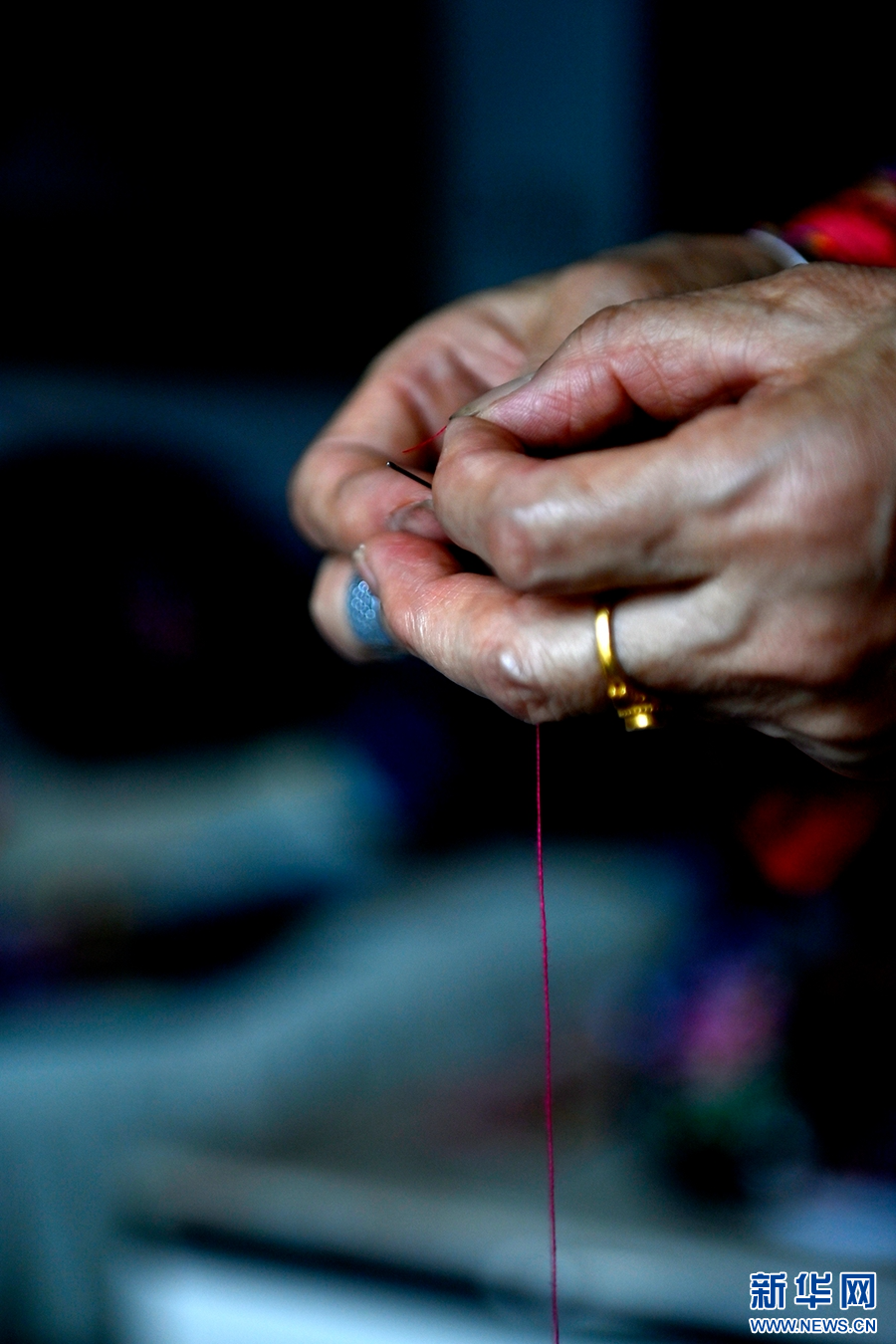 魯仙秀正在穿針(資料圖)。新華網發(適志宏 攝)