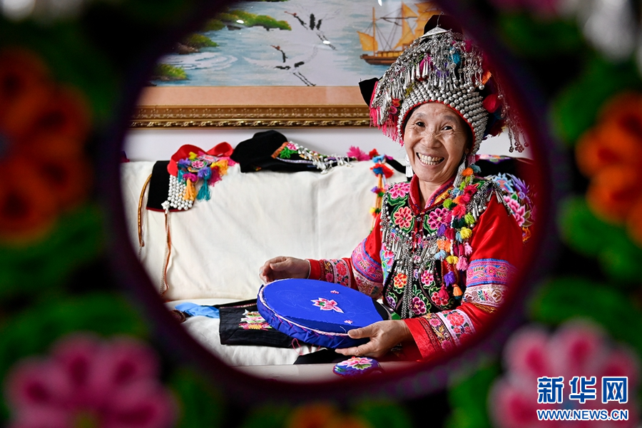 高清組圖看非遺傳承人詮釋彝繡之美