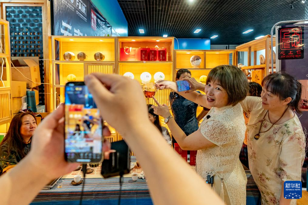 8月17日,展商在第七屆中國—南亞博覽會南亞茶葉節上直播賣貨。新華社記者 胡超 攝