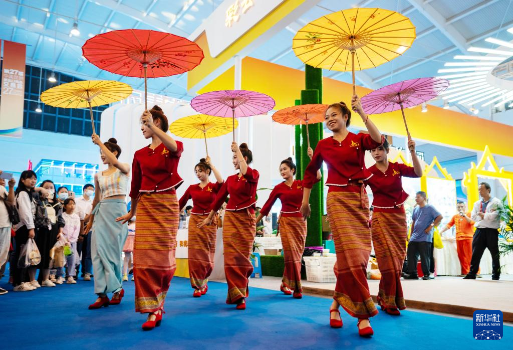 8月20日,演員在第七屆中國—南亞博覽會上表演傣族舞蹈。新華社記者 陳欣波 攝
