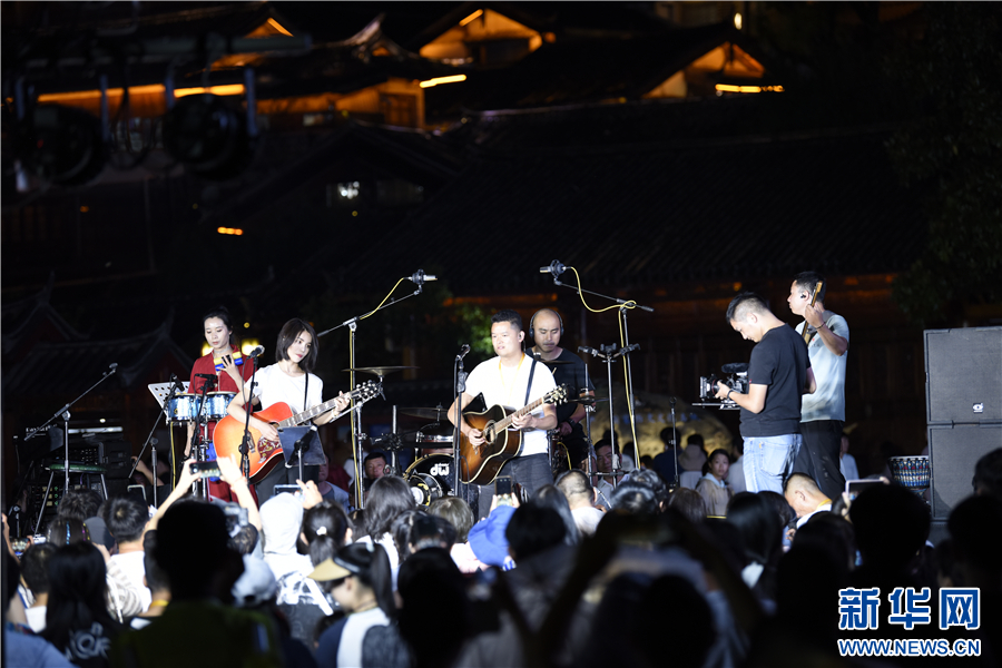 “麗江古城民謠廣場”現場(8月18日攝)。新華網 李寧 攝