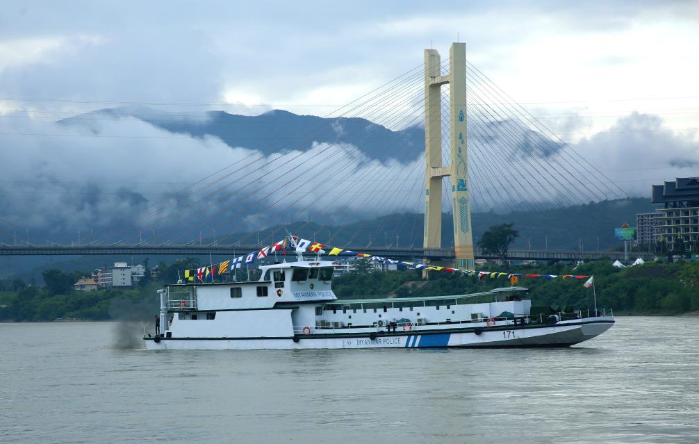 聯合巡邏執法編隊從景哈碼頭啟航,圖為參加此次聯合巡邏執法的緬方171執法艇。云南省公安廳新聞辦 供圖