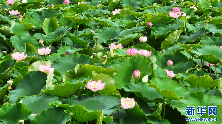 連片荷花正次第綻放(8月23日攝)。新華網發(宋光旭 攝)