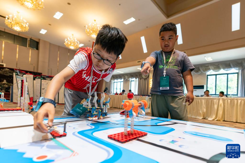 8月26日,兩名參賽選手在調試機器人。