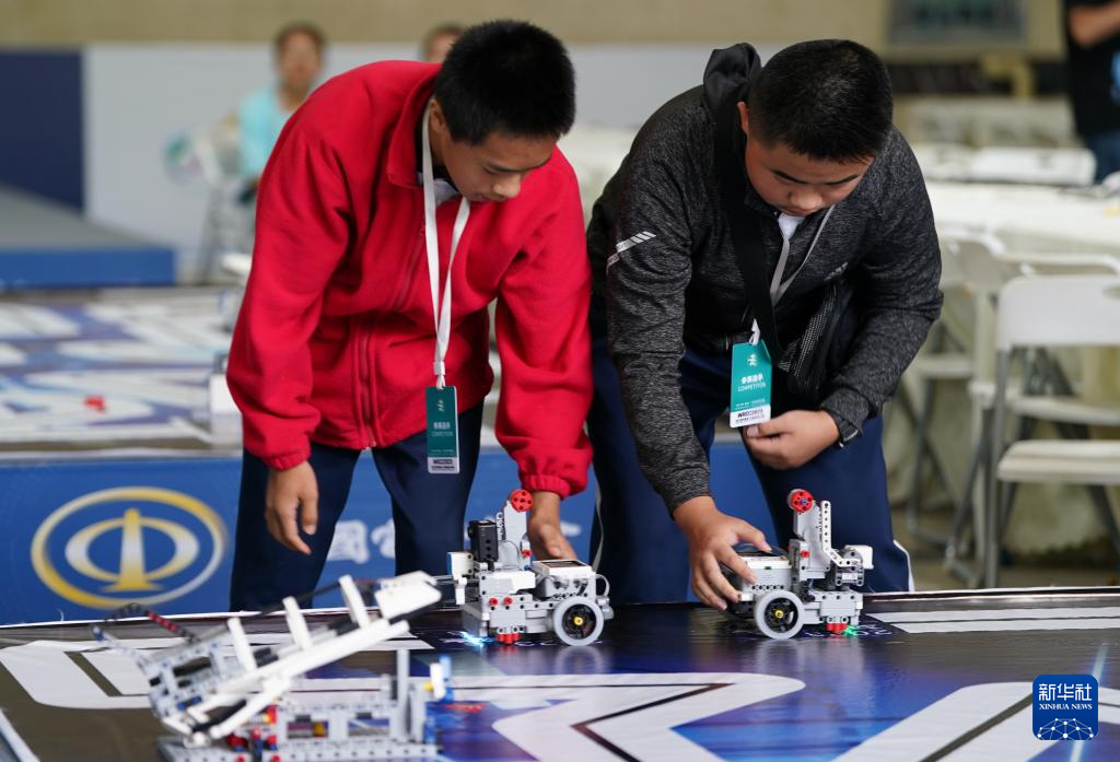 8月26日,兩名參賽選手在比賽前調試機器人。