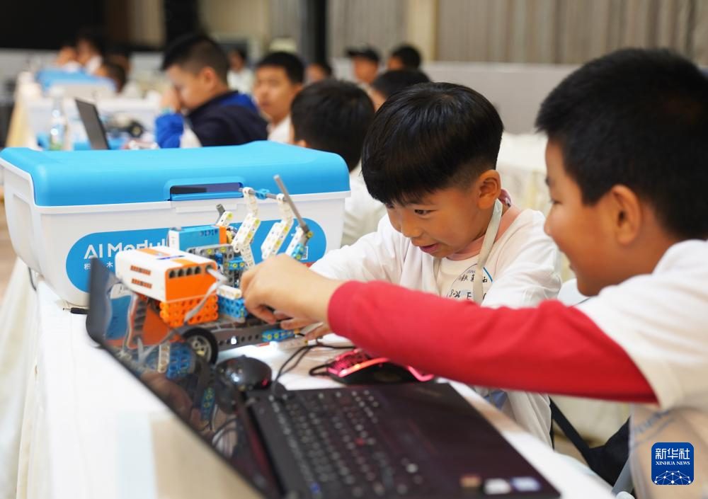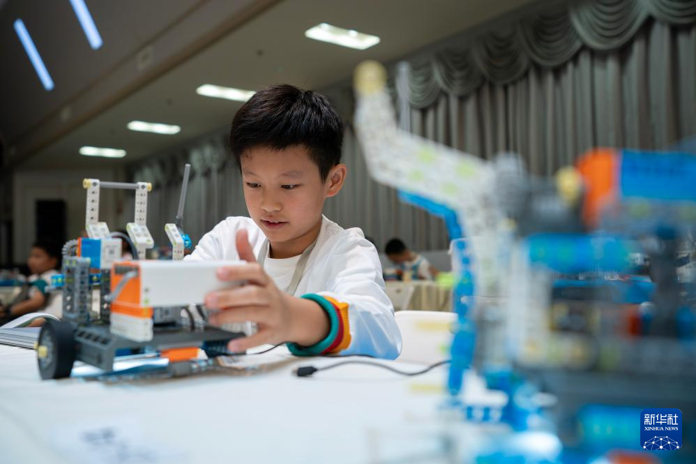 8月26日,參賽選手在比賽現場調試機器人。