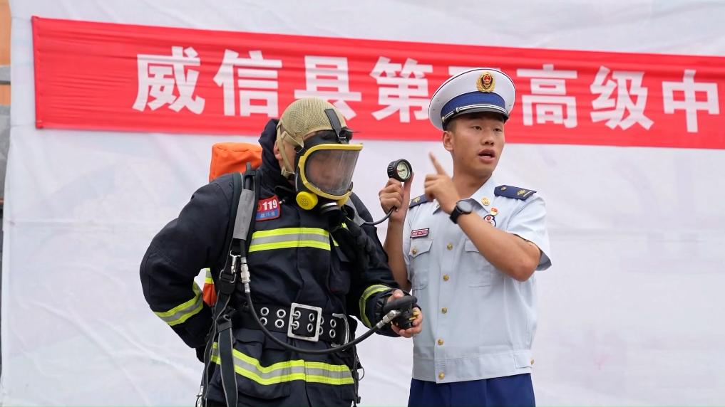 在威信三中,消防員們以逃生演練、使用消防器材、體驗撲救等方式,給學生們上了消防安全“第一課”。