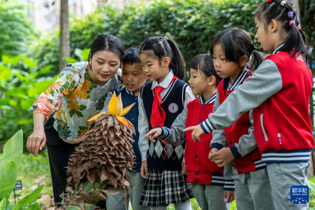 8月27日,云南省昆明市潤城學校的老師帶著學生參觀生物多樣性科普宣傳示范基地。
